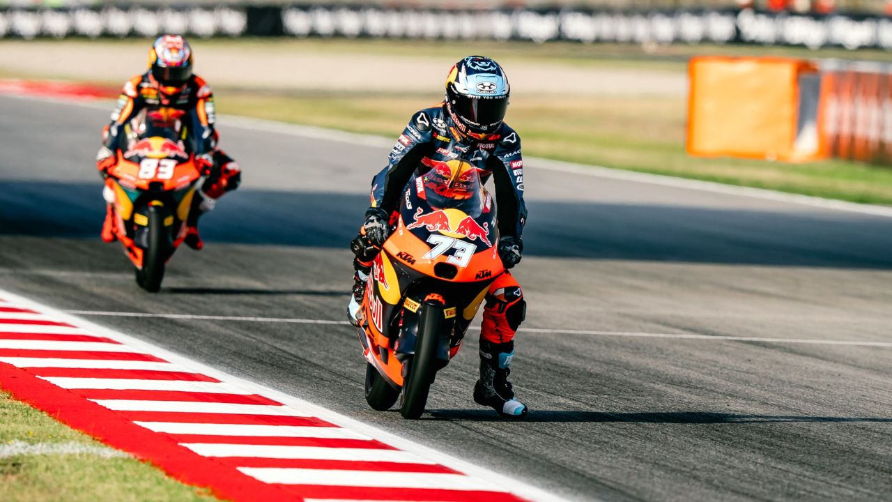 Australian Jacob Roulstone was also excited for his home away from home race weekend, with the Aussie living in the outskirts of Barcelona during the season with his mother Leah. The number 12 showed early good form on Friday morning as he wrapped up FP1 in 9th just 0.891 seconds off early pacesetter Jose Antonio Rueda. Things worked out well for Jacob in the afternoon’s Practice, with the young Red Bull KTM Tech3 rider making the Q2 cut too, as he grabbed the 6th fastest lap of Practice with a 1'48.049, just 0.465 seconds from teammate Perrone. Both Red Bull KTM Tech3 riders will be back on track early tomorrow morning at 8:40 LT (UTC+2) with FP2, before qualifying 2 at 13:10!