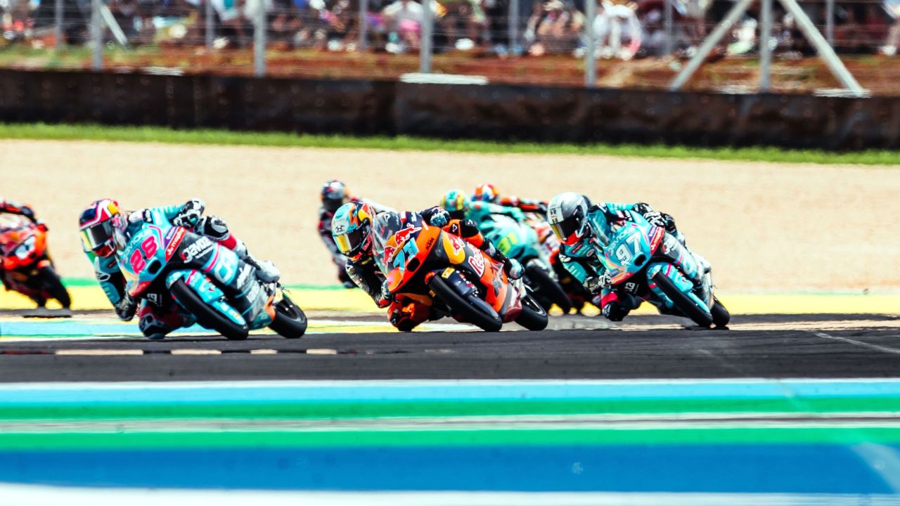 On a fully dry track, Perrone maintained position at the start before swiftly snatching first place from pole-sitter and fellow KTM rider, Joel Esteban, into Turn Four. After briefly conceding the advantage, the Argentinian was running comfortably in the front pack, before finding himself compromised by a high-side for Esteban directly ahead of him.